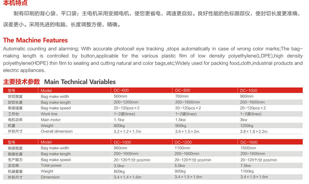 DC-600-1000電腦控制單道、四道熱封冷切制袋機(jī)